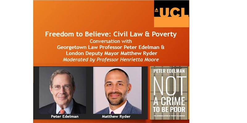 FREE EVENT: Conversation with Georgetown Law Professor Peter Edelman (Harvard AB, LLB) & London Deputy Mayor Matthew Ryder. Moderated by Professor Henrietta Moore.